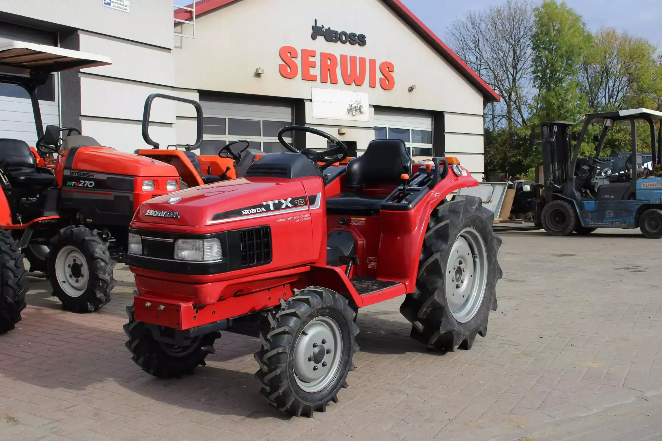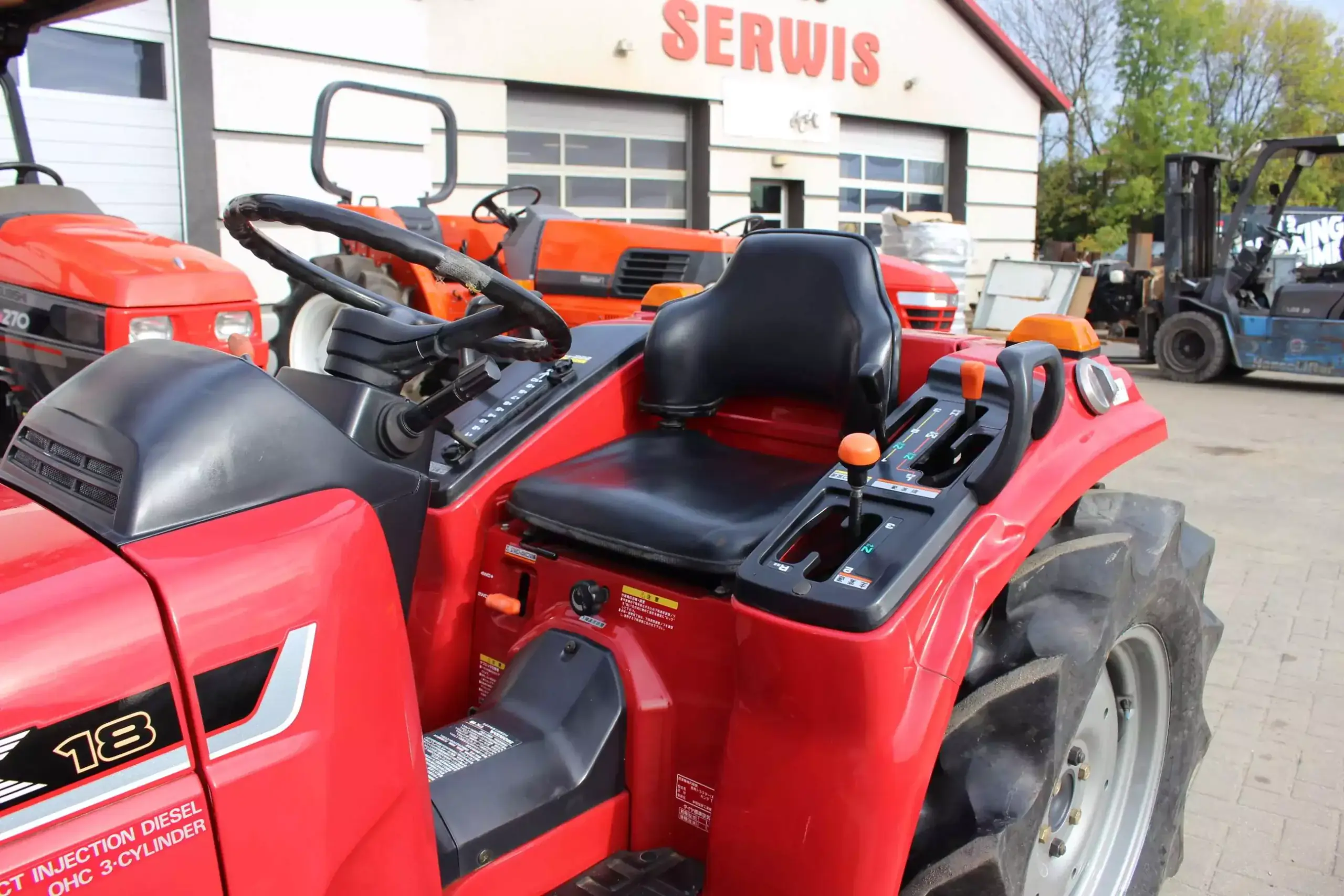 Opis: - silnik diesel 3 cylindry 18KM - blokada mechanizmu różnicowego - napęd na 4 koła (odłączany) - silny podnośnik 3 punktowy - wałek mocy PTO 3 prędkości - wydajna pompa hydrauliczna - 3 prędkości jazdy + na każdej 3 biegi do przodu + 1 do tyłu - Wspomaganie - traktor z nowej dostawy, w bardzo dobrym stanie, Jako bezpośredni, doświadczony importer używanych mini traktorków japońskich: *oferujemy w pełni sprawny sprzęt, który przechodzi u nas gruntowny przegląd techniczny, *w każdym traktorku wymieniane są filtry, oleje, łożyska, simmeringi, drążki kierownicze, siedzenia, *wymieniane opony są bardzo dobrej jakości, *metalowe podzespoły są piaskowane, malowane farbą podkładową oraz akrylową, *udzielamy 12 miesięcznej pisemnej gwarancji na cały traktorek, *wydajemy deklarację zgodności CE, posiadamy instrukcję bezpiecznej obsługi która może służyć jako „DTR” w języku polskim, *zapewniamy stały dostęp do oryginalnych części zamiennych, *prowadzimy serwis mini traktorków oraz profesjonalne doradztwo techniczne, *oferujemy sprzedaż ratalną lub w leasingu, *posiadamy również własny transport na terenie Polski i Europy. Na życzenie klienta montujemy: - ładowacz czołowy - kabinę - pług do śniegu - kosiarkę, przyczepkę, zamiatarkę itp. Informacje pod nr telefonu 71 319 02 82 lub 530 683 775