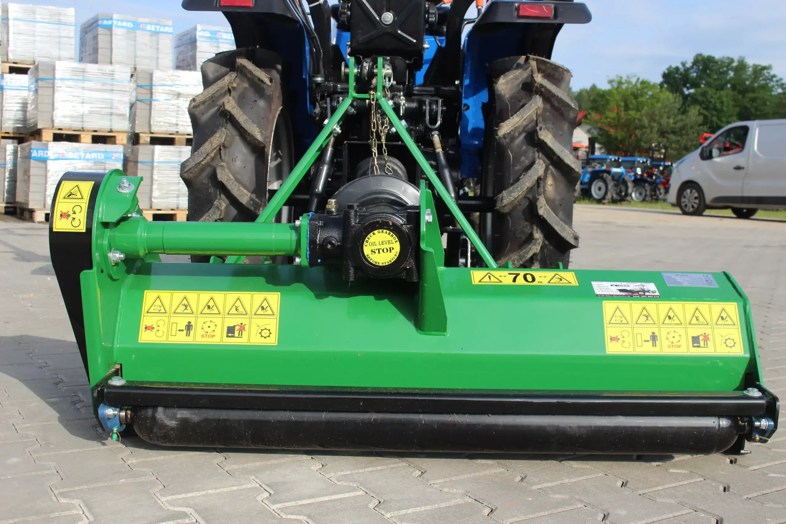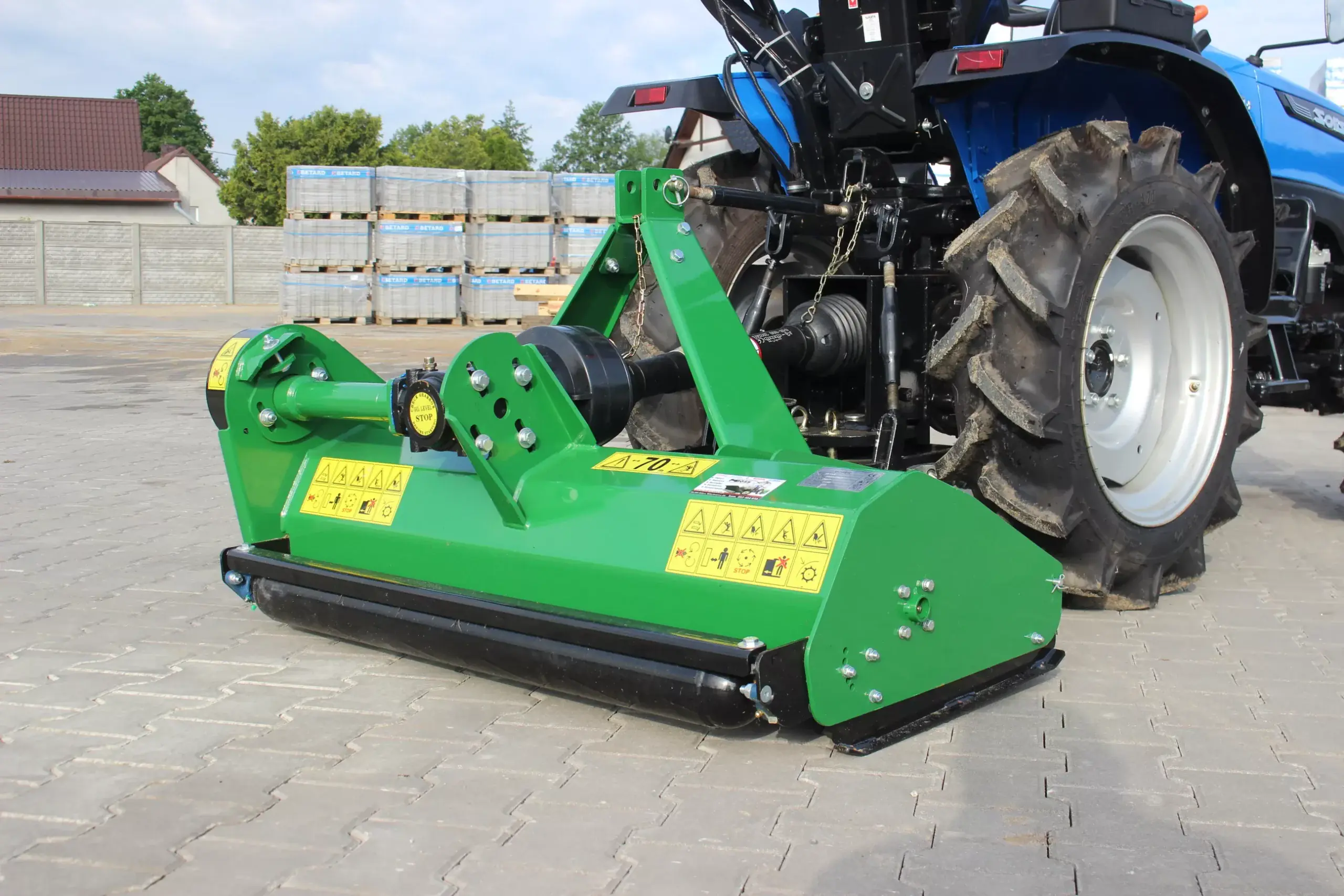 Zalety: 1. Mocowanie za pomocą trzypunktowego układu zawieszenia z tyłu ciągnika, 2. Prosta wymiana noży/bijaków, 3. Idealne dopasowanie do podłoża oraz równomierna wysokość koszenia, 4. Regulacja wysokości koszenia 5. Lekka obudowa
