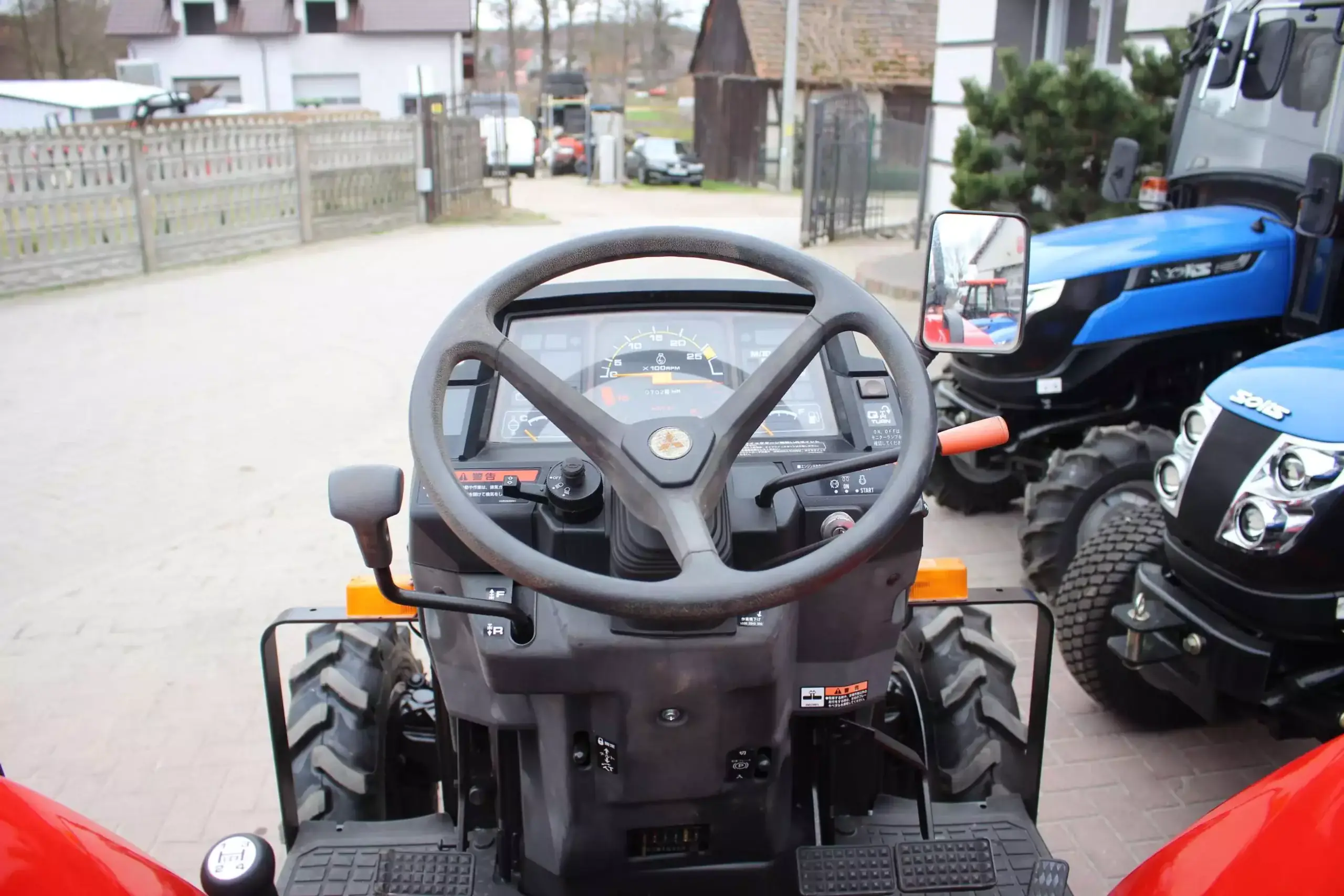 Opis: - silnik diesel 3 cylindry 24,5KM - blokada mechanizmu różnicowego - napęd na 4 koła (odłączany) - silny podnośnik 3 punktowy - 4 prędkości jazdy + na każdej 4 biegi do przodu + 4 do tyłu (rewers) - wałek mocy PTO 4 prędkości w tym wsteczny - wydajna pompa hydrauliczna - wspomaganie kierownicy - nowy model Jako bezpośredni, doświadczony importer używanych mini traktorków japońskich: *oferujemy w pełni sprawny sprzęt, który przechodzi u nas gruntowny przegląd techniczny, *w każdym traktorku wymieniane są filtry, oleje, łożyska, simmeringi, drążki kierownicze, siedzenia, opony - bardzo dobrej jakości, *metalowe podzespoły są piaskowane, malowane farbą podkładową oraz akrylową, *udzielamy 12 miesięcznej pisemnej gwarancji na cały traktorek, *wydajemy deklarację zgodności CE, posiadamy instrukcję bezpiecznej obsługi, która może służyć jako „DTR” w języku polskim, *zapewniamy stały dostęp do oryginalnych części zamiennych, *prowadzimy serwis mini traktorków oraz profesjonalne doradztwo techniczne, *oferujemy sprzedaż ratalną lub w leasingu, *posiadamy również własny transport na terenie Polski i Europy. Na życzenie klienta montujemy: - ładowacz czołowy - kabinę - pług do śniegu - kosiarkę, przyczepkę, zamiatarkę itp... Informacje pod nr telefonu 71 319 02 82 lub 530 683 775