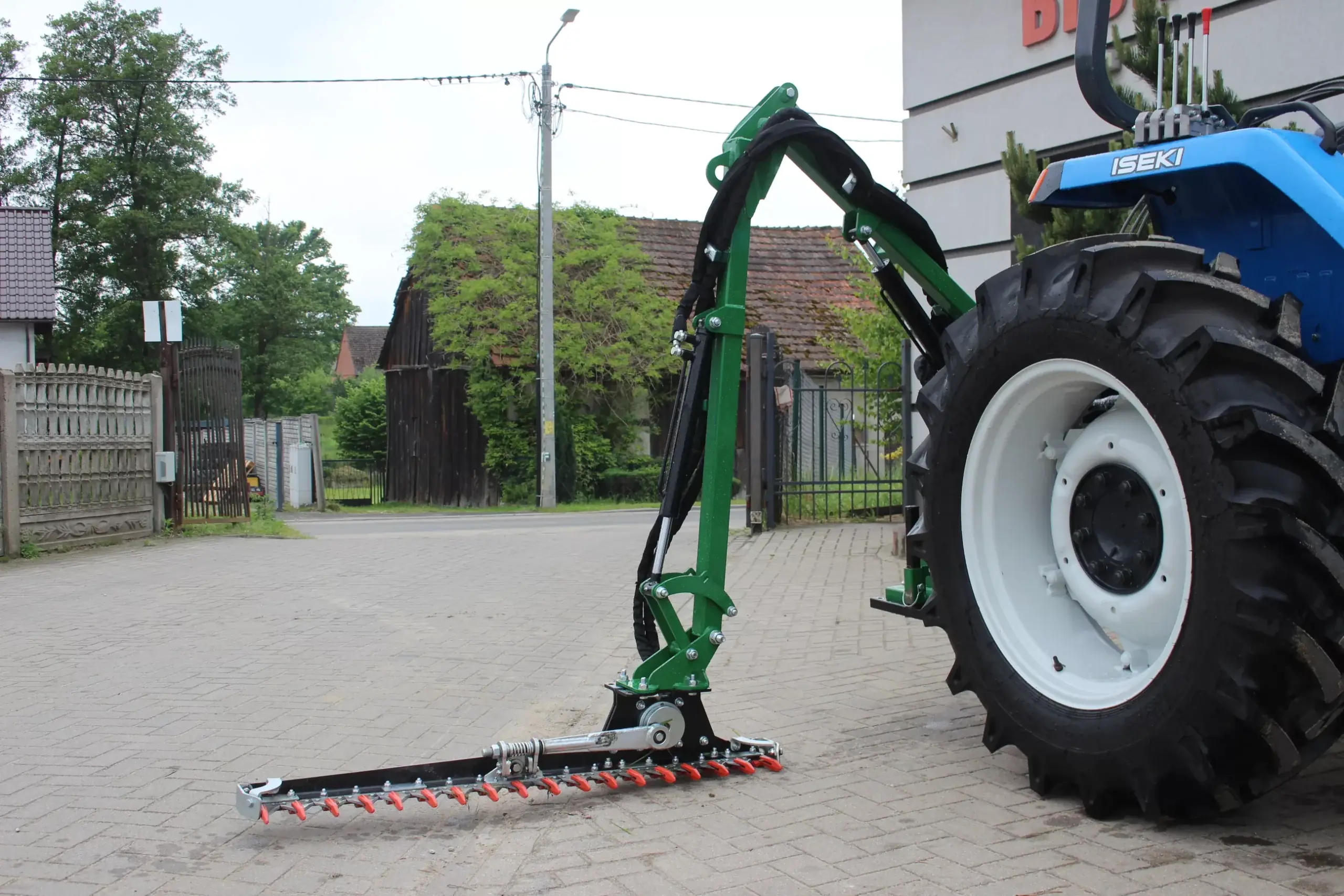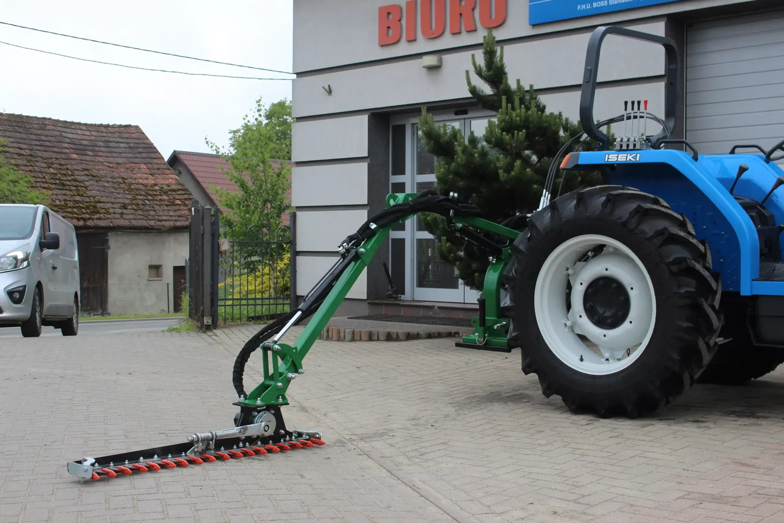 7. Kosiarki te charakteryzują się szerokim zakresem pracy w poziomie, co umożliwia omijanie przeszkód (np. znaków drogowych, drzew) bez zmiany toru jazdy ciągnika,