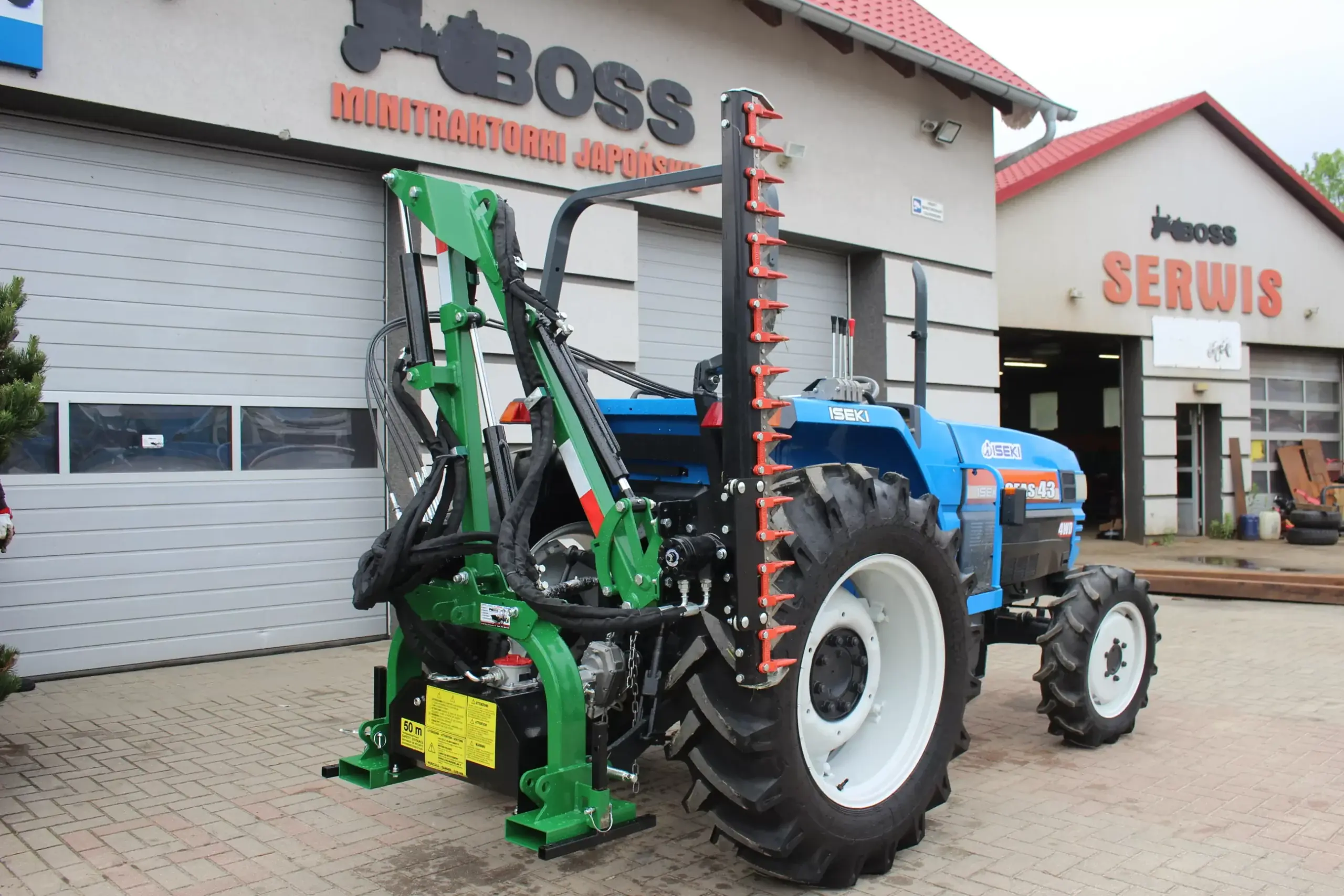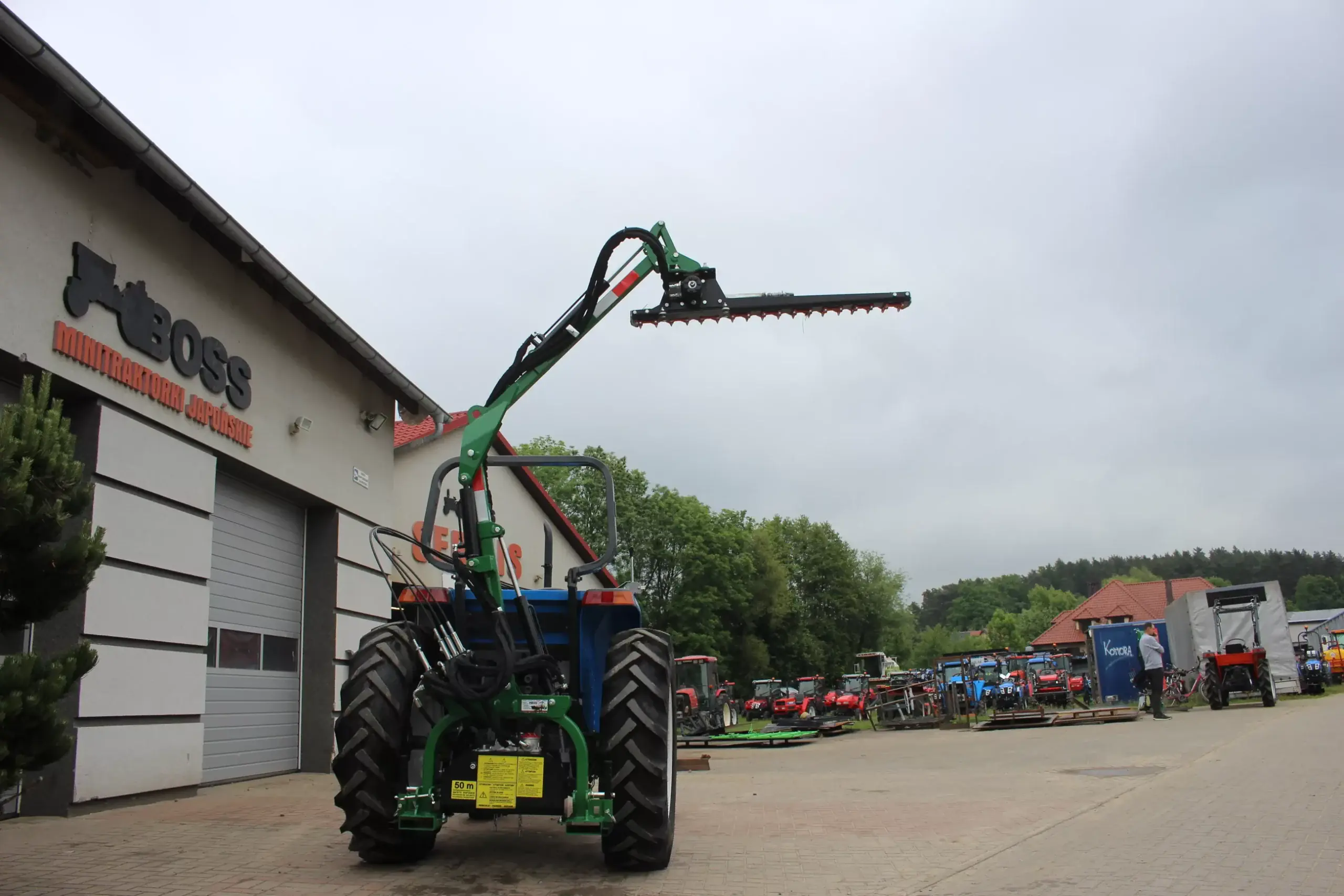 Kosiarka hydrauliczna HRT 130 do przycinania żywopłotów i krzewów. Poprzez proste sterowanie obrotem drugiego ramienia drążek tnący może pracować po prawej i lewej stronie ciągnika. Innowacyjna odwracalna rama, która umożliwia montaż maszyny z tyłu lub z przodu bez żadnych specjalnych modyfikacji.