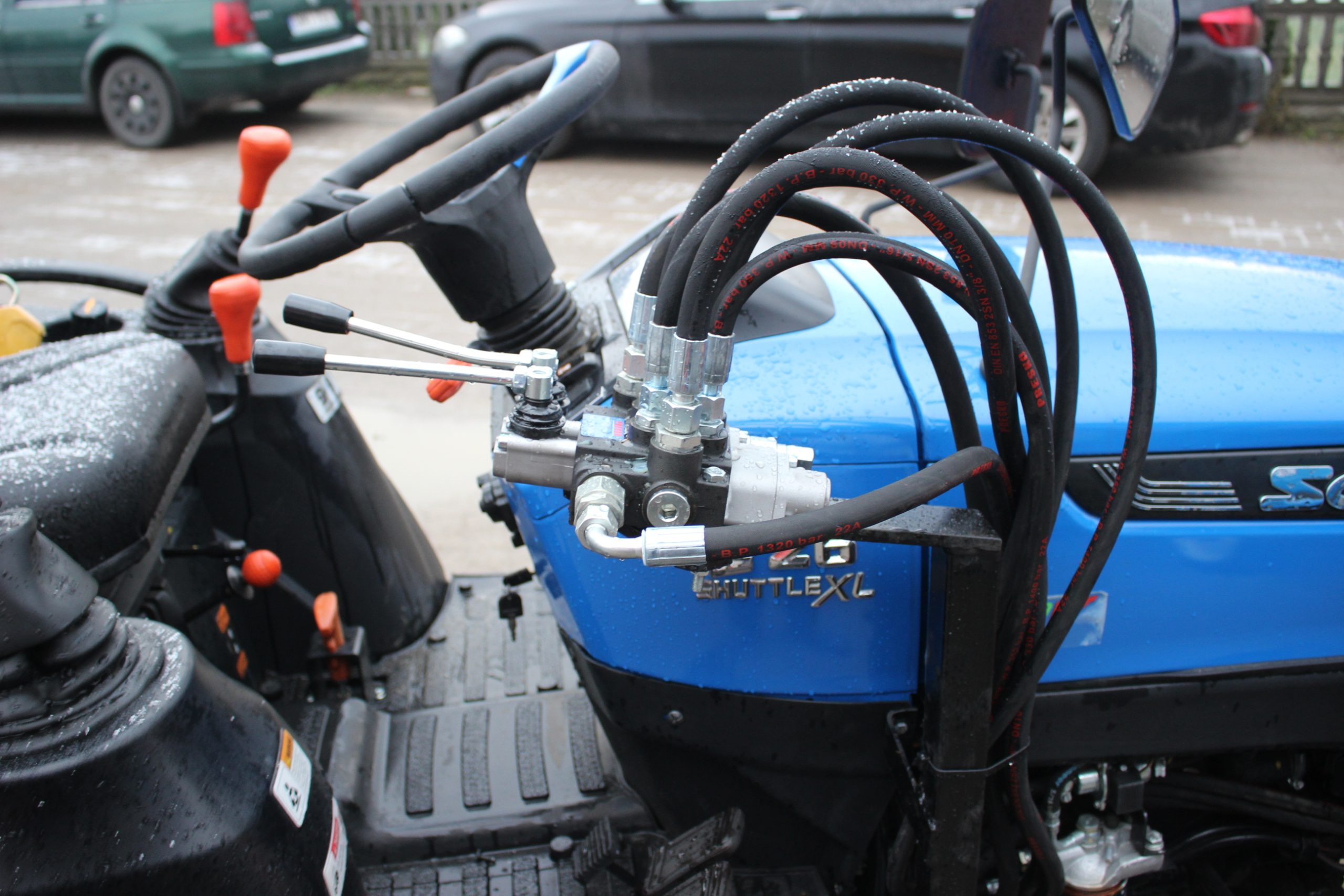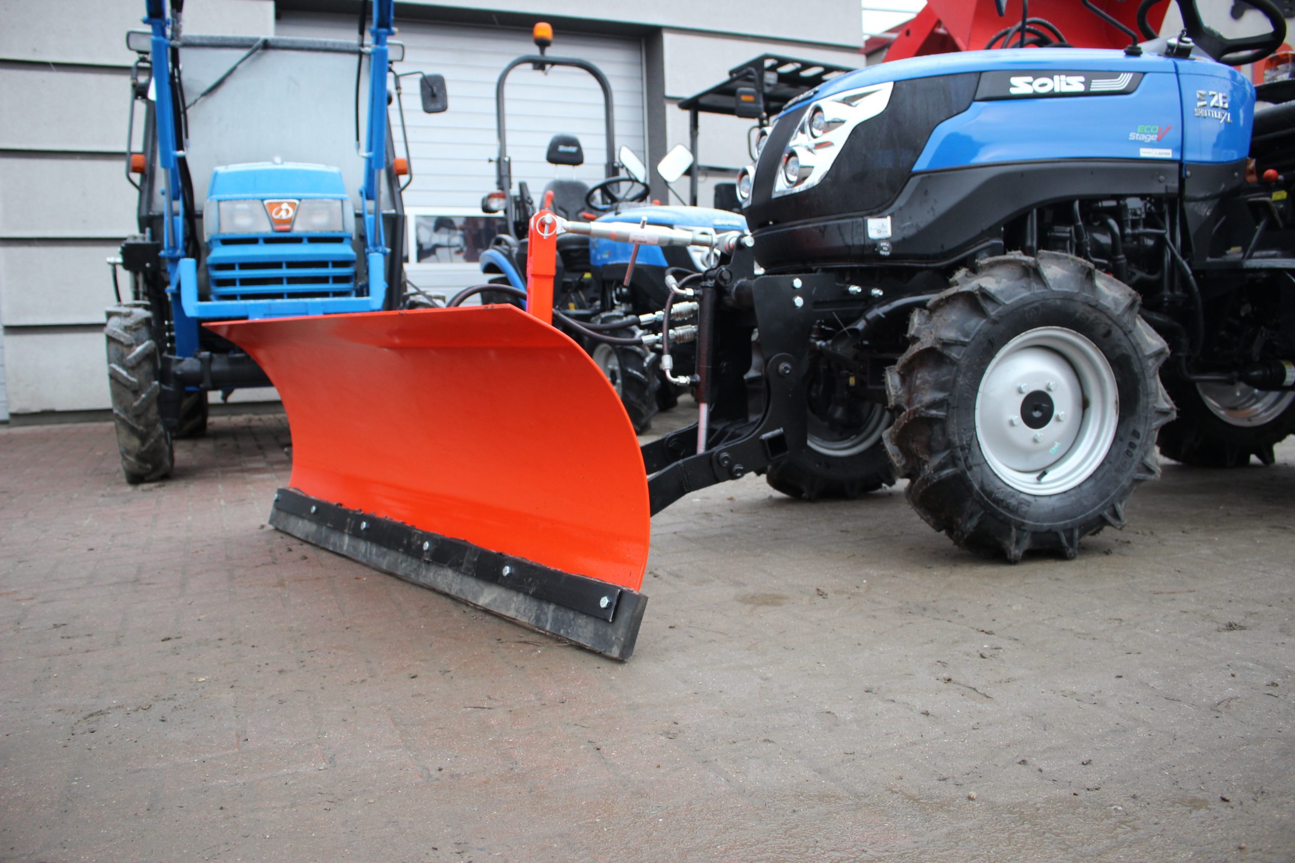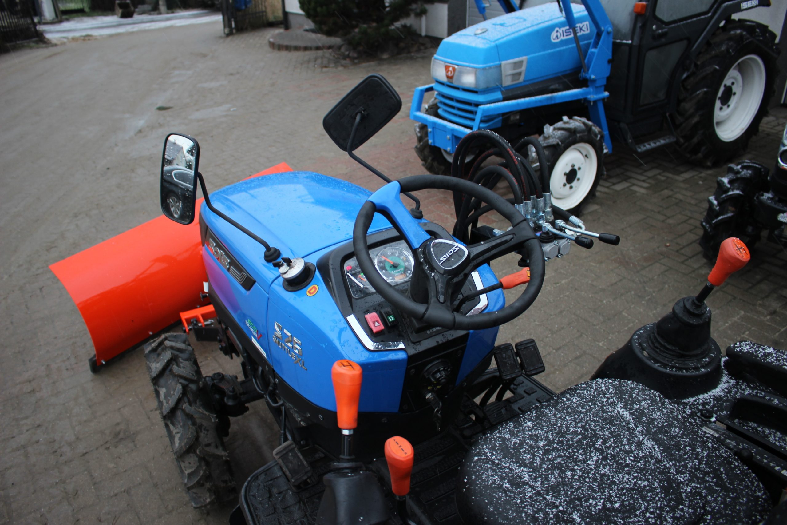 SOLIS 26 9+9 ShuttleXL z przenim TUZ-em i pługiem do śniegu na kołach rolniczych.