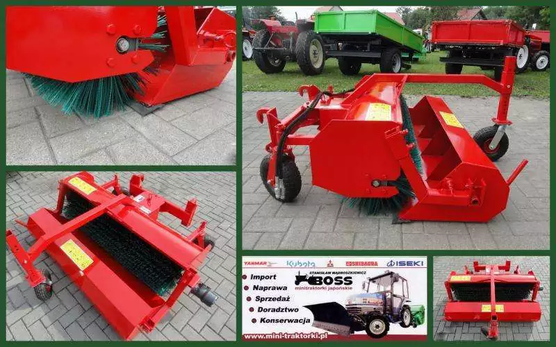 Zamiatarka przeznaczona jest do zamiatania z jednoczesnym zbieraniem śmieci z takich powierzchni jak: drogi, place i chodniki pokryte asfaltem, betonem lub kostką brukową. Zamiatarkę można użyć do zamiatania na jedną stronę, po uprzednim zdemontowaniu zbiornika na śmieci np. do zimowego utrzymania dróg, placów, chodników. -szerokość robocza 135 cm -silnik hydrauliczny 50-120 -pojemność kosza 0,10m3 -waga 200 kg -obroty szczotki 200–250 obr/min -maksymalna prędkośc ciągnika 10 km/h -mocna, solidnie wykonana konstrukcja - regulacja pozycji szczorki (prawo, lewo) Oferujemy również osprzęt do mini traktorków ogrodniczych:
